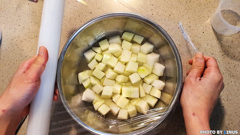 랩으로 잘 감싸주고... 하루동안 실온보관한 다음...