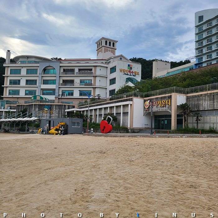 남일대 해수욕장 뒤편으론 남일대해수랜드라고 숙박시설도 보인다.