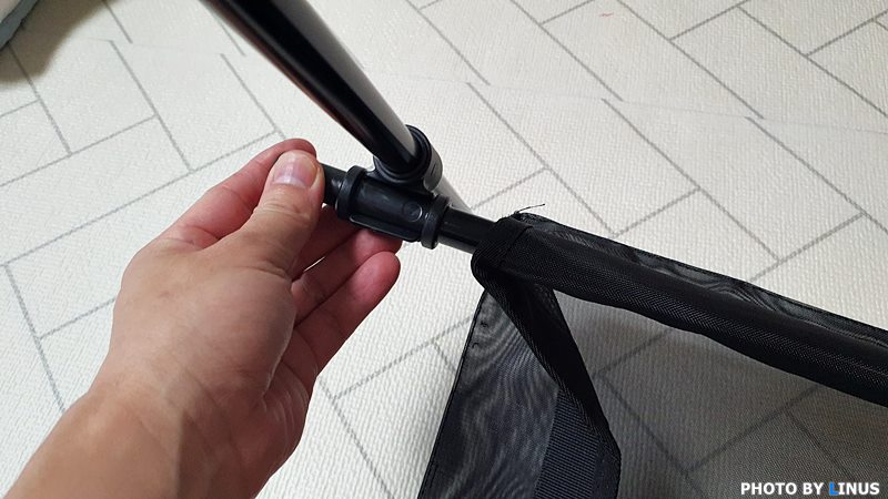 폴대 아래쪽에 있는 연결부위에 메쉬망도 끼워보자.