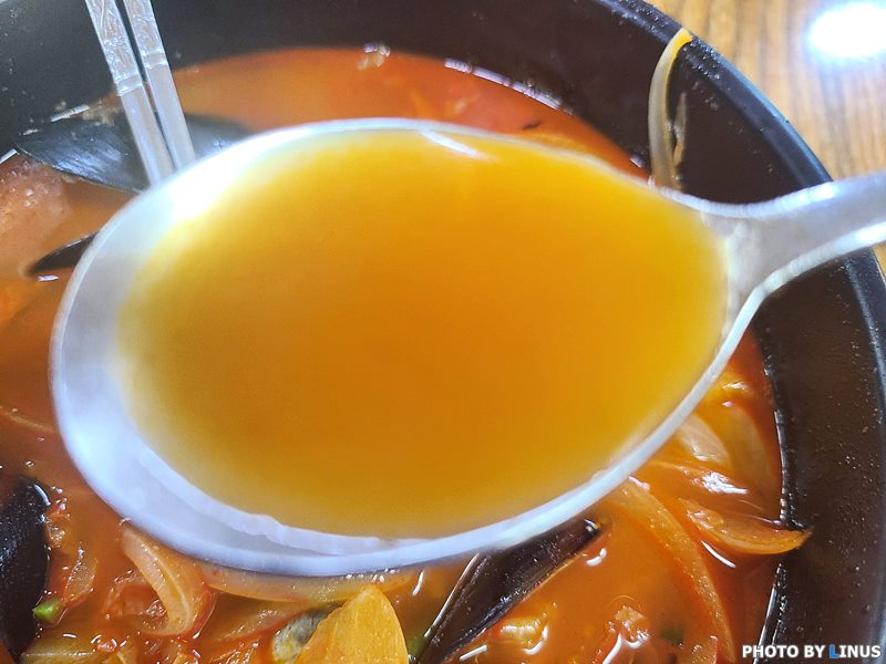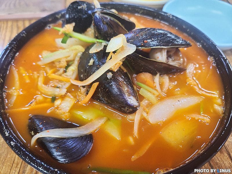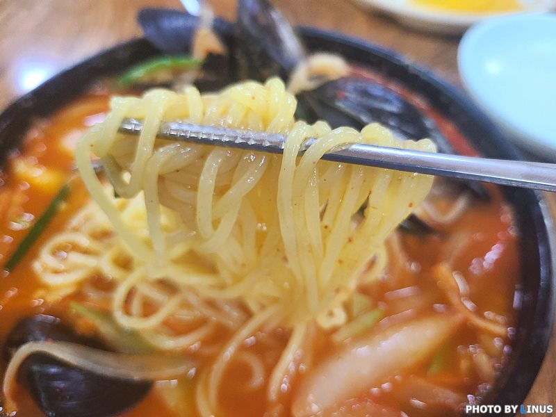 다으으론 짬뽕. 이건 삼선은 아니고 일반 짬뽕인데 홍합이 많이 들어가있다.