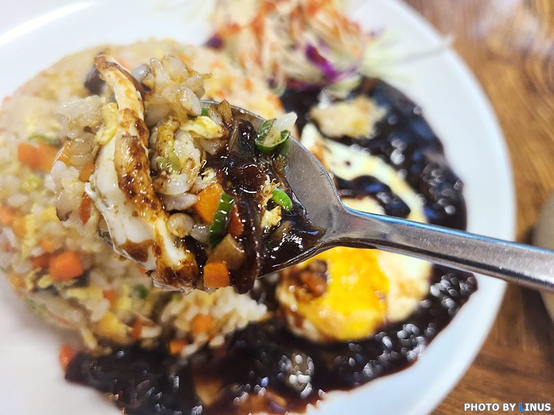 볶음밥 안에도 당근, 계란, 파, 애호박 등 다양한 야채들과 밥이 잘 어우러져 있어 맛있어보인다.