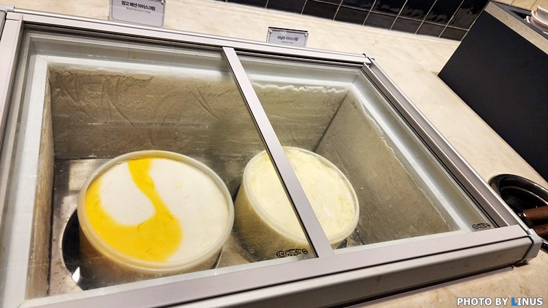 디저트 아이스크림이 보인다. 망고 아이스크림, 레몬 소르베인듯.