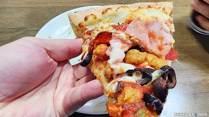 라이너스 씨는 특히 파파존스의 도우(빵) 부분을 좋아하는데 뭔가 다른 피자보다 더 두툼하고 고소한 느낌이다. 빵부분을 별로 안좋아해서 남기는 편인 뭉이도 여기 도우는 맛있는지 남김 없이 다 먹는다고...