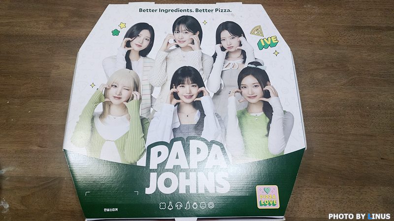픽업을 해서 집으로 돌아왔다. 파파존스의 공식 모델은 걸그룹인 아이브! 파파존스에서는 존스 페이버릿, 수퍼 파파스, 크리스피 치즈 페퍼로니 피자, 위스콘신 치즈 포테이토, 아이리쉬 포테이토, 브라우니 등의 메뉴가 유명한데... 라이너스 씨는 기본형을 좋아해서 수퍼 파파스로 선택!