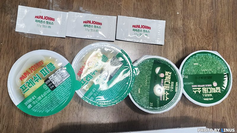 라이너스 씨가 좋아하는 갈릭 디핑 소스에 듬뿍 찍어 한입~ 그래, 이맛이야. 이제 부산갈때마다 굳이 파파존스를 사먹지 않아도 된다!