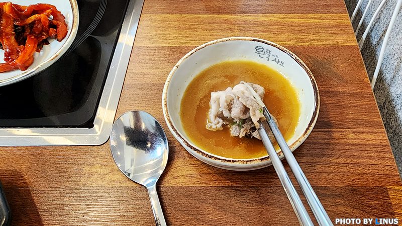 어느덧 바닥을 보이기 시작하는 뚝배기. 국물은 다소 맑은 편으로 시원~하다.^^ 참고로 영업시간은 오전 11시부터 오후 9시까지, 브레이크 타임은 오후3시부터 5시까지 일요일은 휴무라고...