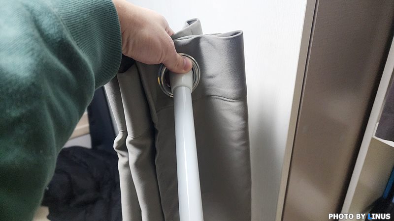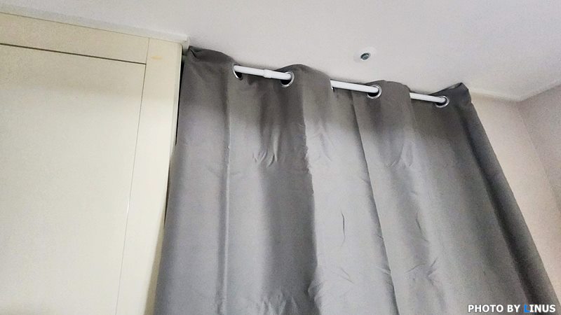 잘 고정 되었다. 커튼링사이로 빛이 조금 비치긴하나 이정도는 무난.