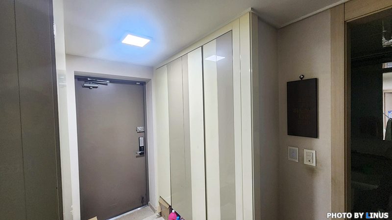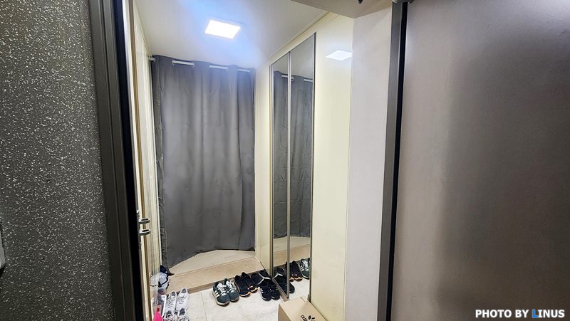게다가 현관 쪽에는 움직임 감지 센서 현관등이 설치되어있는데... 이것도 화장실에 가느라 지나만 가도 자꾸 켜져서 불편하기도 공간분리가 필요해보인다.