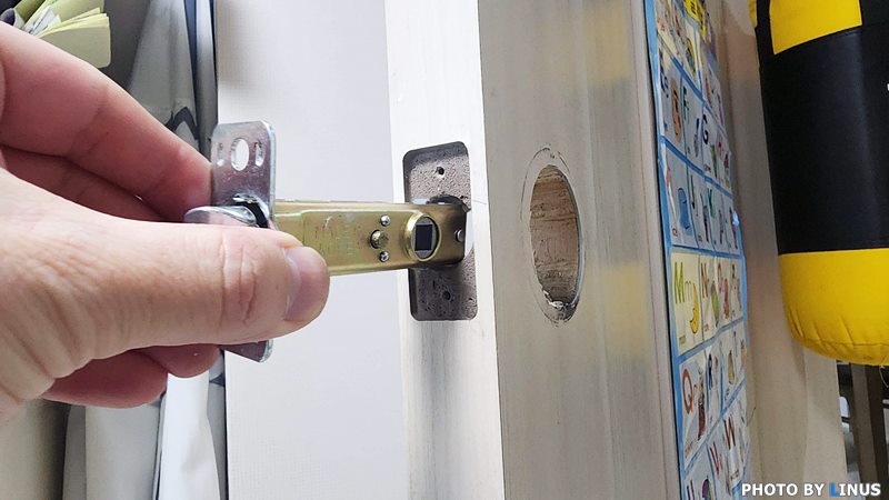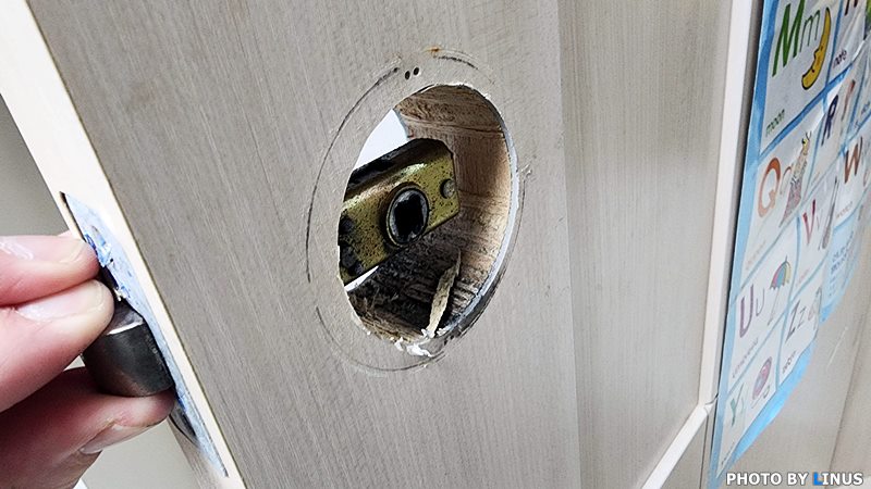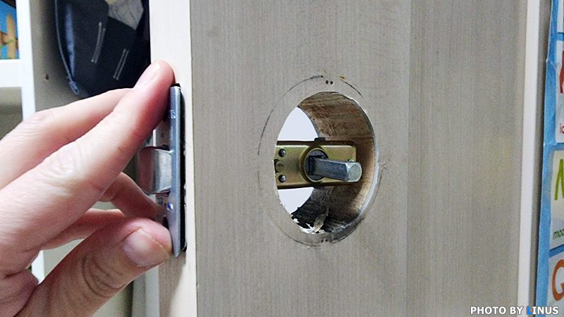 제거후 새로 구입한 렛지머리를 잠금장치 구멍 안으로 넣어준다.