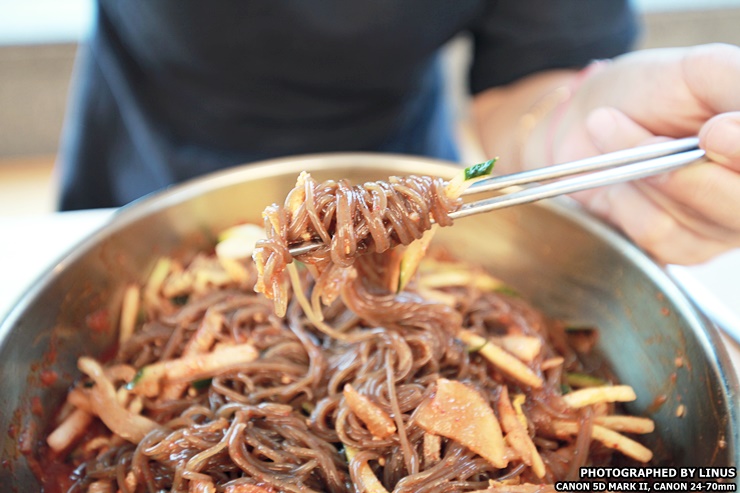 육전과 냉면을 동시에 같이 집어 드시면 더 맛있다. 육전의 짭짤 고소한 맛과 비빔냉면의 매콤한 맛이 잘 어우러진다.