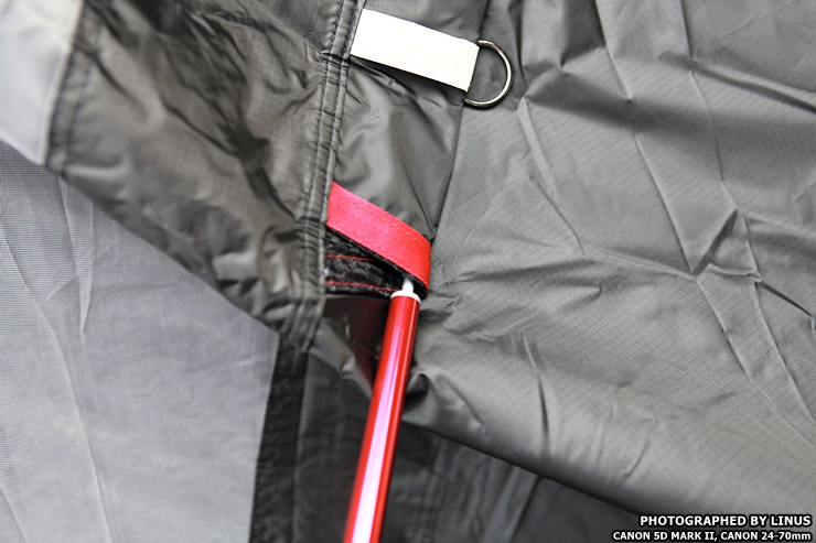 역시 붉은색으로 표시된 구멍으로 폴대를 밀어넣는다.
