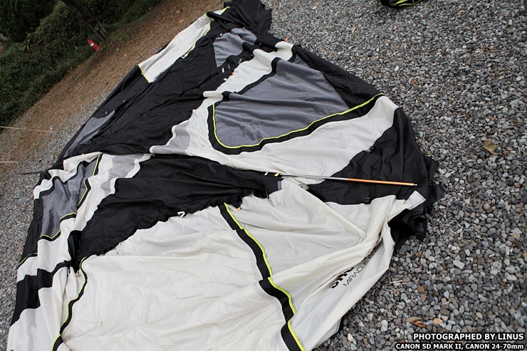 이제 뼈대는 다 완성되었다. 아직까지 팩을 다 박지않아 텐트가 흐느적거려보인다.