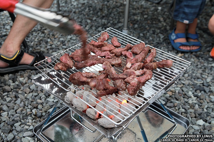 잠깐 기다리면서 스노우라인 미라클패밀리 사진 한 컷 더.ㅎㅎ; 숯에 불이 갓 붙었을때 고기를 구우면 타버릴수있으니 검은 숯의 표면히 하얗게 변하면 그때 고기를 굽기 시작하면된다.