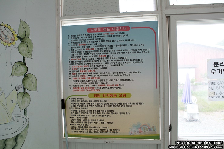 도토리 캠프 이용안내 및 캠핑장 안전행동 요령.