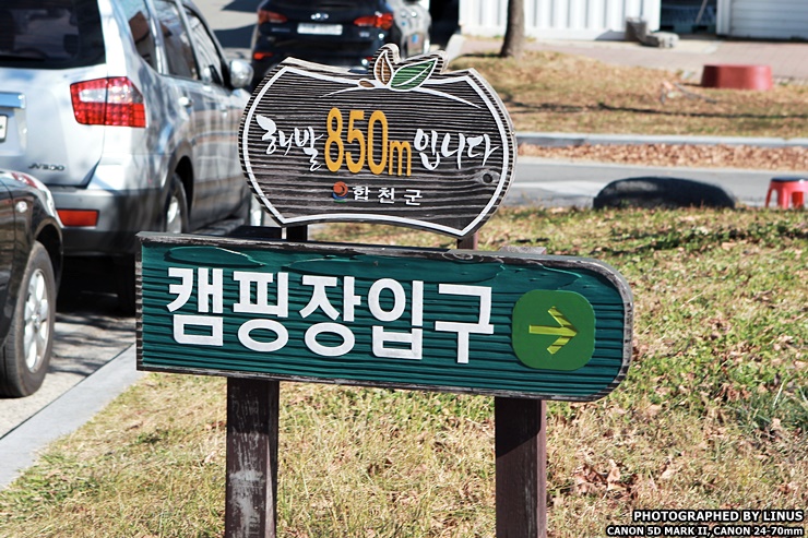 드디어 도착! 캠핑장입구라는 푯말과 함께 해발 850m라는 안내문구도 보인다.