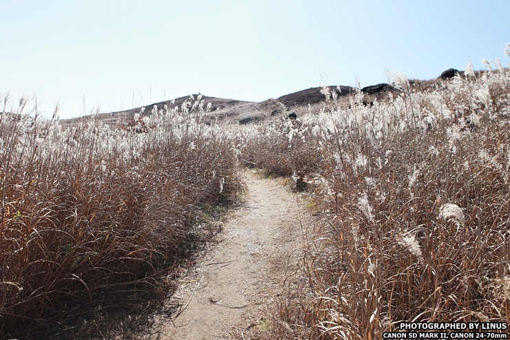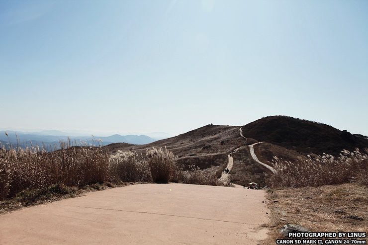 억새 물결을 바라보며 굽이굽이 산위로 펼쳐진 길을 따라 걷는다.
