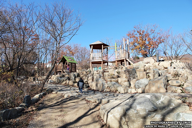 아침 식사후 트리하우스 옆에 있는 숲속 놀이터로 놀러간 아이들.