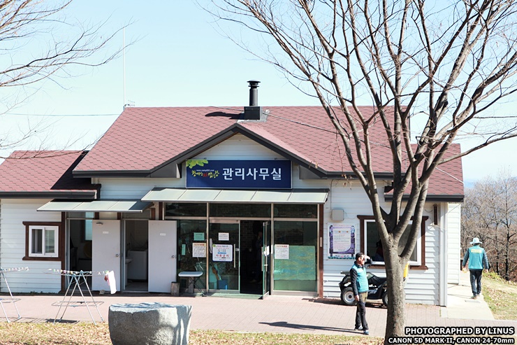 주차장 바로 뒤편으로 관리사무실이 있는데 이곳에서 체크인(입실)을 하고 종량제봉투를 받으면 된다. 안에는 간이 매점도 있어서 과자나 장작, 등유 등을 구입할수있고, 뒤편에는 분리수거장이 위치하고있다.