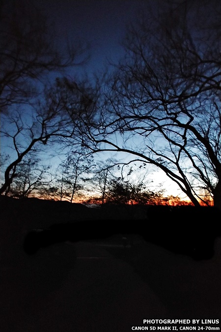 라이너스씨가 아이들과 함께 쿨쿨 자는 동안 뭉이는 일출을 보기 위해 일어났다고...ㅎㅎ 새벽녘의 어스름이 깔린 숲속.