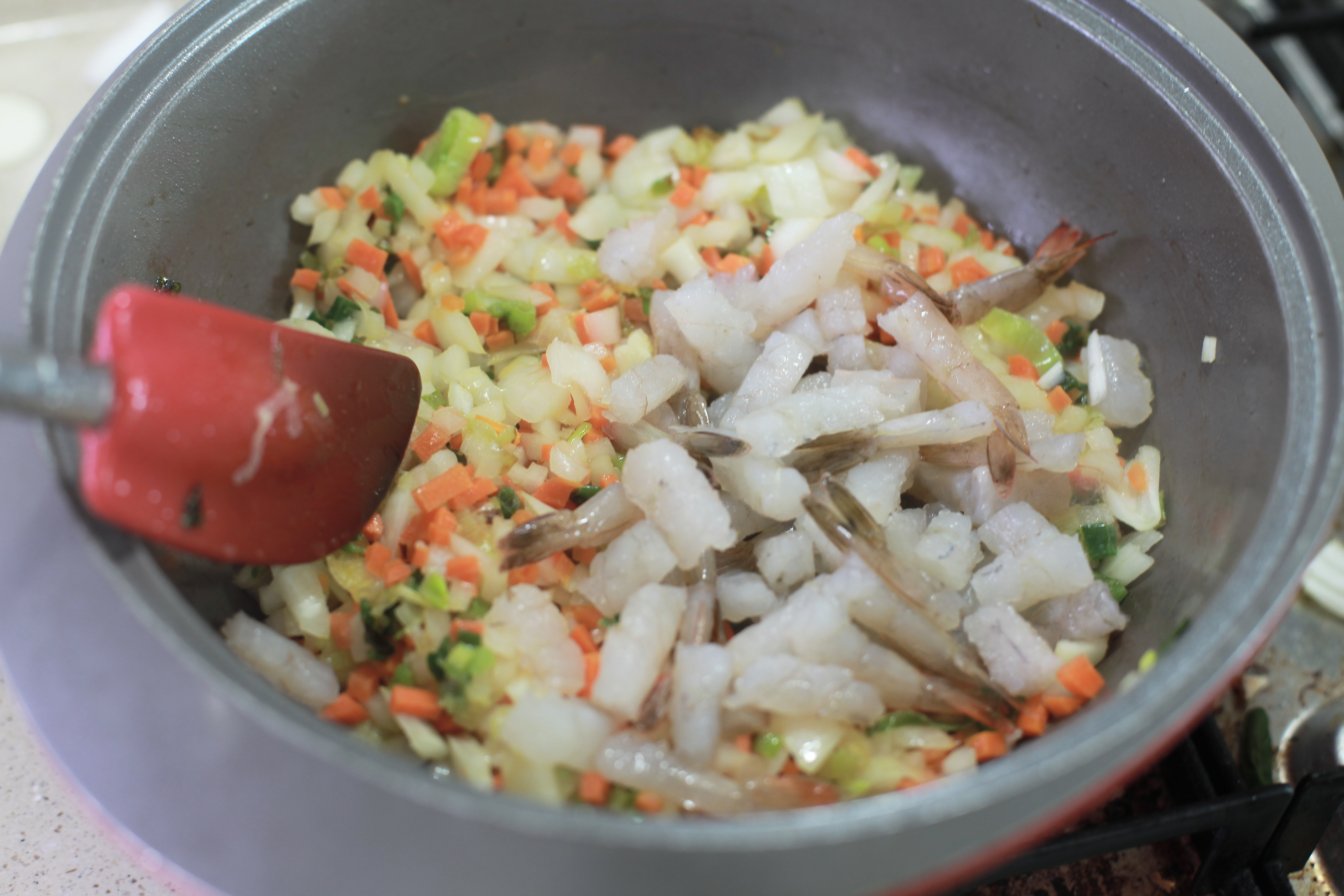 야채가 어느정도 익으면 손질해둔 새우를 넣어준다.
