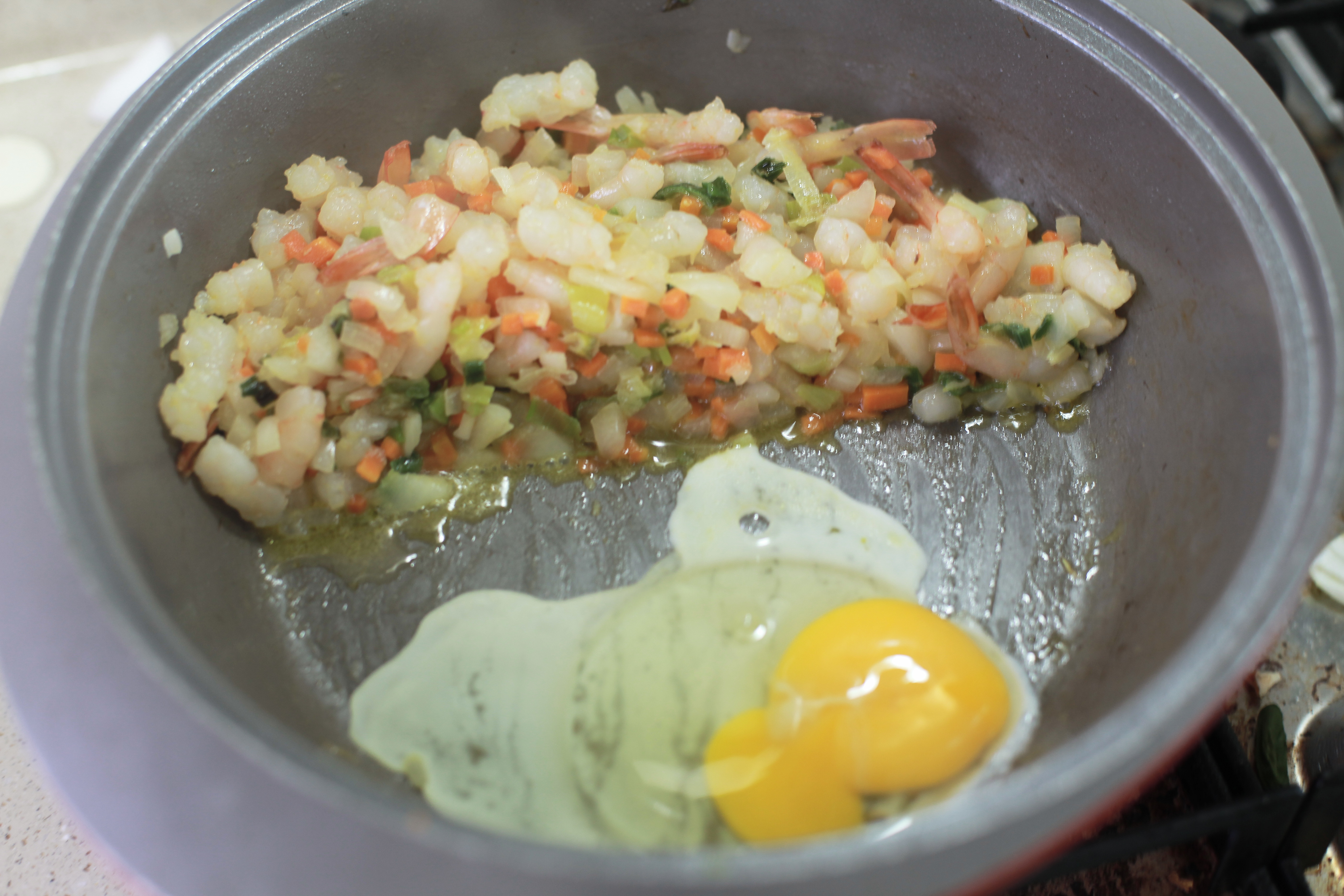 새우가 다 익었다싶으면 볶음밥을 옆으로 밀어주고...