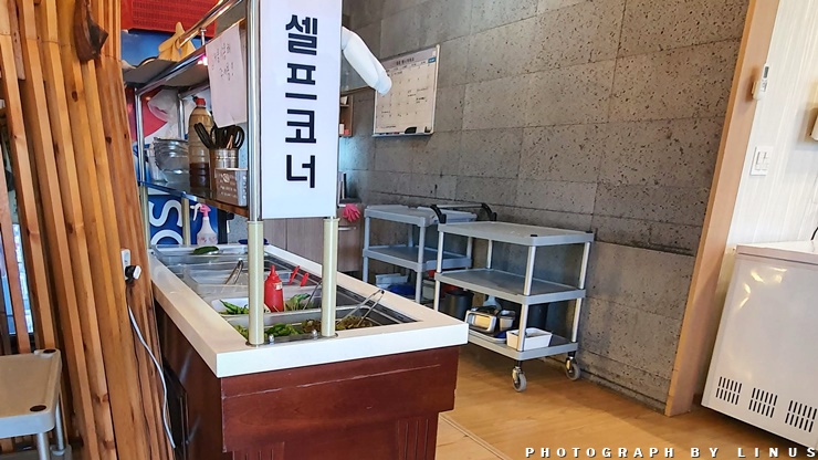 셀프코너... 혹여나 야채나 고기소스등이 부족하면 이곳에서 자유롭게 리필해 드시면 된다.