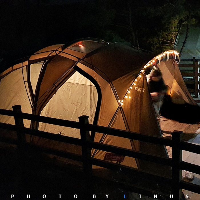 드디어 본격적인 캠핑의 시간. 저녁이 왔다. 코쿤2의 웅장한 모습. 확실히 앞뒤로나 위로도 미라클패밀리에 비해 훨씬 넉넉한 사이즈.