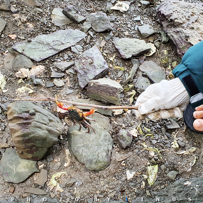 게를 많이 잡고 신이나서 올라오는 아이들...