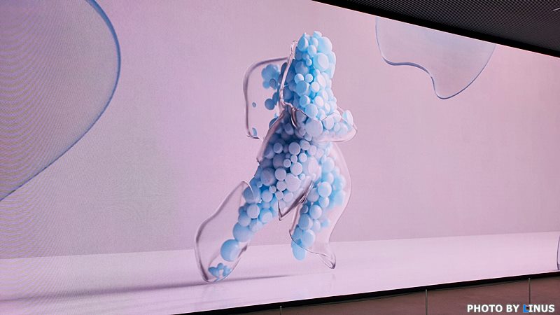 입구에 설치되어있는 대형 스크린. 리플렉션즈 인 모션이라는 설치 미술로... 6월 27일까지 전시된다고... 보고 있으면 제법 재미있다. 철골모양의 사람이 달려가면서 비누거품이 되기도하고 물방울로 변신하기도하고...