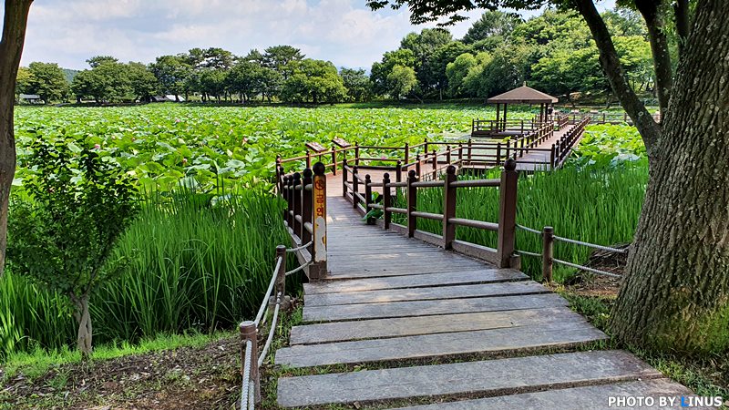 연잎이 푸릇푸릇하다. 해마다 이곳은 연꽃이 필 무렵 찾는 여행객과 방문객이 많다.