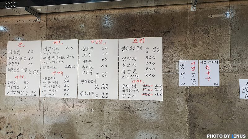 얼음밀면, 불짜장, 해물짬뽕 등이 적혀있다. 그중 특이할 만한게 '편하신 곳에 주차하시고 주차권만 가져오세요.'라고 적혀있다. 즉, 어느 주차장을 이용하든 1시간까지는 부자상회에서 주차비를 보상(?)해준다고... 올레~