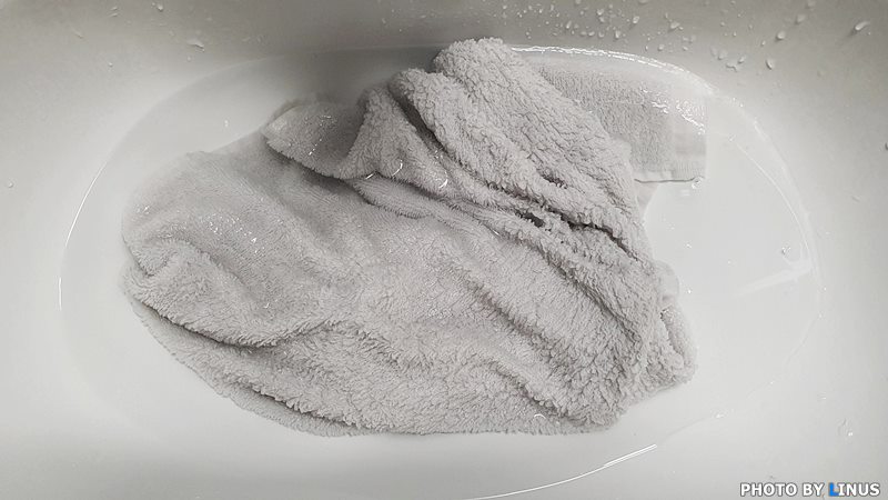 흐리거나 비오는 날엔 햇볕에 말릴 수 없으니 락스를 활용하는 것도 하나의 방법. 수건을 물을 담그고 락스를 몇방을 떨어뜨려준다.