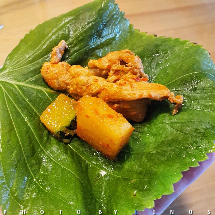 찌개처럼 떠먹고 밥에 비벼먹어도 좋지만... 역시 깻잎에 싸먹는 게 진리.^^;