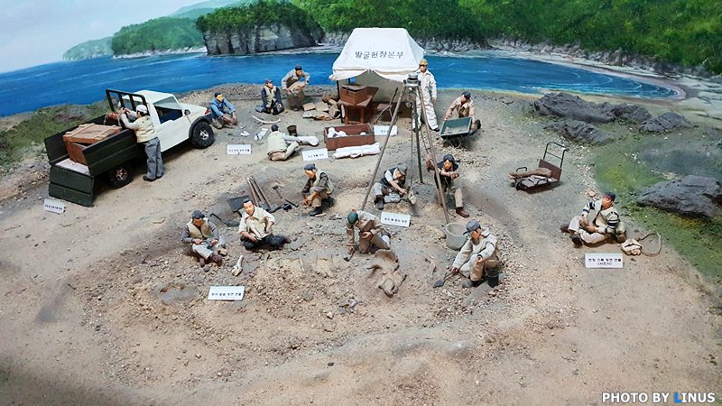 움직이는 공룡들의 디오라마가 펼쳐진다.