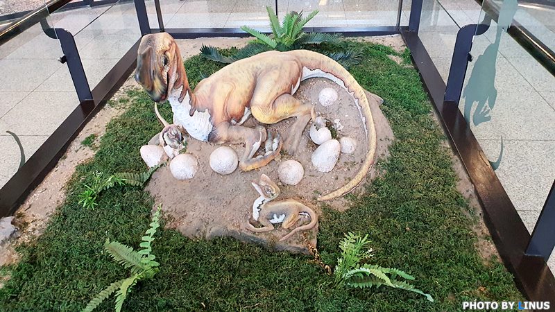 박물관 입구에는 알을 깨고 나오는 아기 공룡들의 모습이...