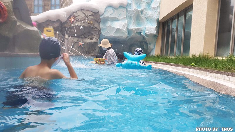 미니 워터 슬라이드도 있어서 아이들이 즐겁게 물미끄럼틀을 타고 내려온다.
