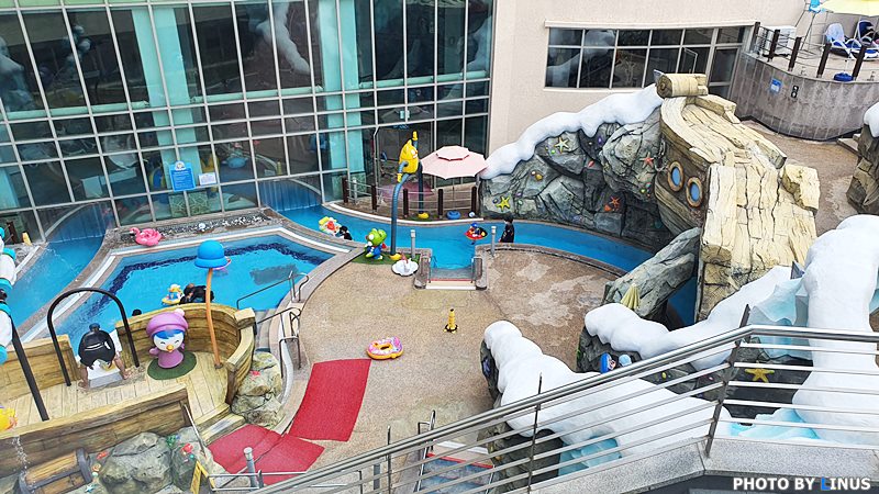 실내의 모습은 대충 이렇다. 좁아보이지만 뒤편으로도 시설이 더 있다. 선배드도 있는 것 같은데 사실 본격적으로 어른을 위한 워터파크가 아니라서 그런지 별로 이용률이 높지는 않은듯.^^; 개인 음식은 아기들 이유식과, 깎은 과일같은 건 반입이된다.
