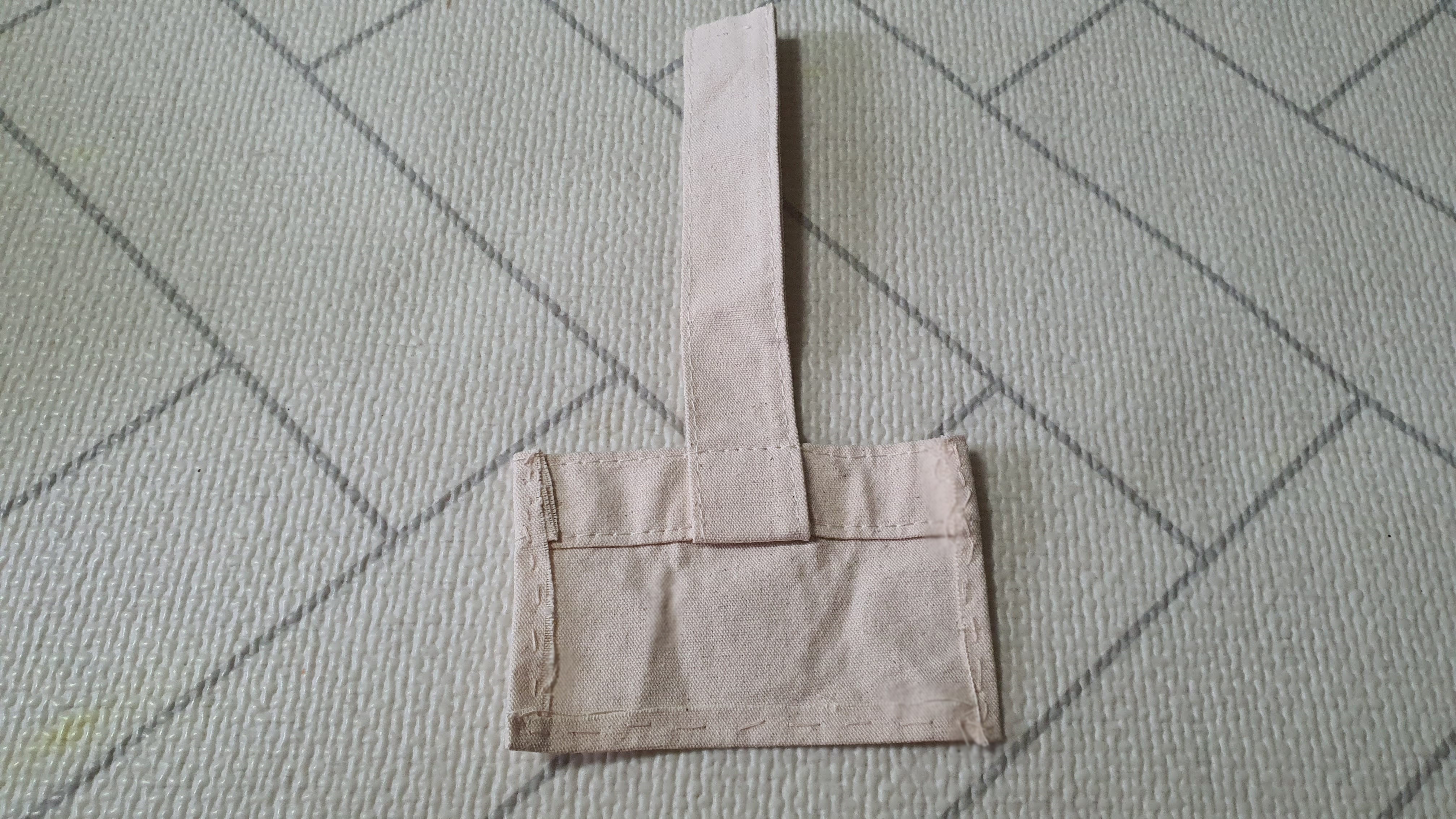 반보다 조금만 더 감싸주면 되니 대략 6cm정도로 길이를 잡았다. 아래부분은 접어서 바느질할 부분이라 2cm정도 남겨두었다. 이때 주의할 점은 손잡이를 위쪽에 남겨놓는것.