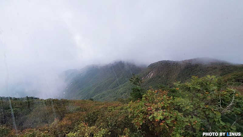 비가 살짝 내리는 거 같기도... 운무에 휩싸인 산도 제법 멋지다.