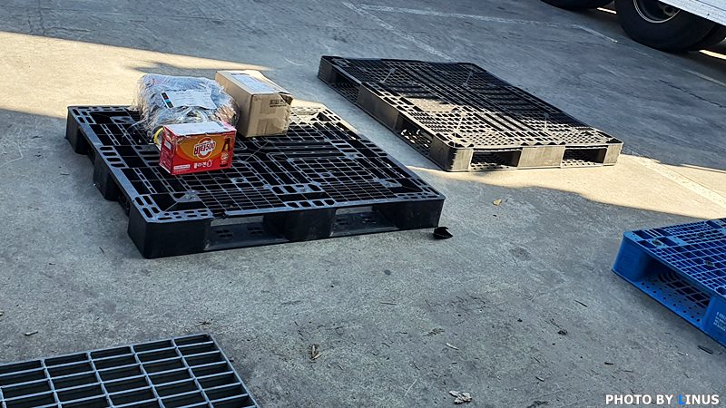 밖으로 나오니 파레트들이 즐비하다. 절허게 부피별로 택배를 파레트 위에 모아서...