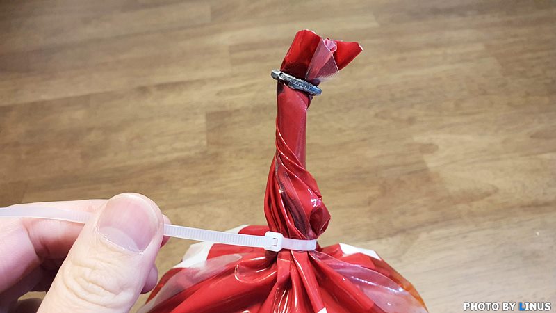 결국은 이렇게 봉지 자체를 잘라내는 방법밖에...ㅠㅠ 케이블타이도 그대로 쓰레기통으로 직행이다. 그렇다면 케이블타이와 비닐봉지에 손상을 입히지않고 깔끔하게 제거하는 방법은 없을까?