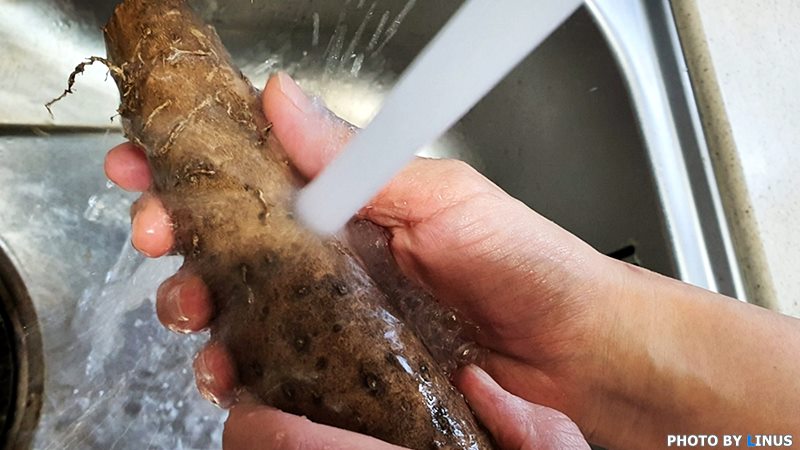 마 손질법은 간단하다. 마를 물에 잘 씻어 흙을 털어내고...