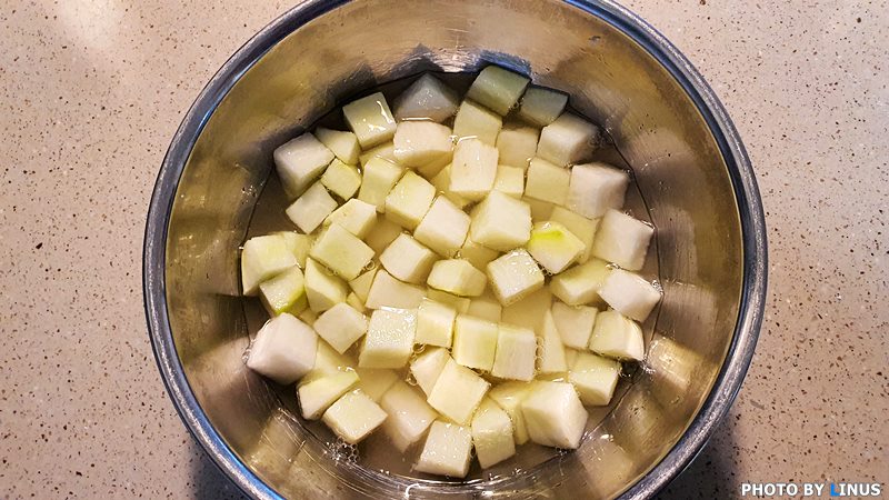 깍두기를 만들때처럼 깍뚝썰기를 해준다.