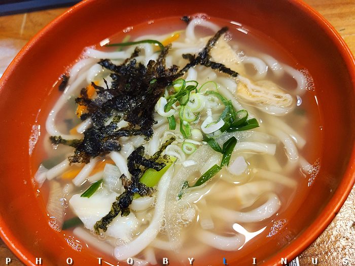 다음으론 우동~ 어릴때 시장에서 먹던 바로 그 우동면발, 국물의 맛이다~