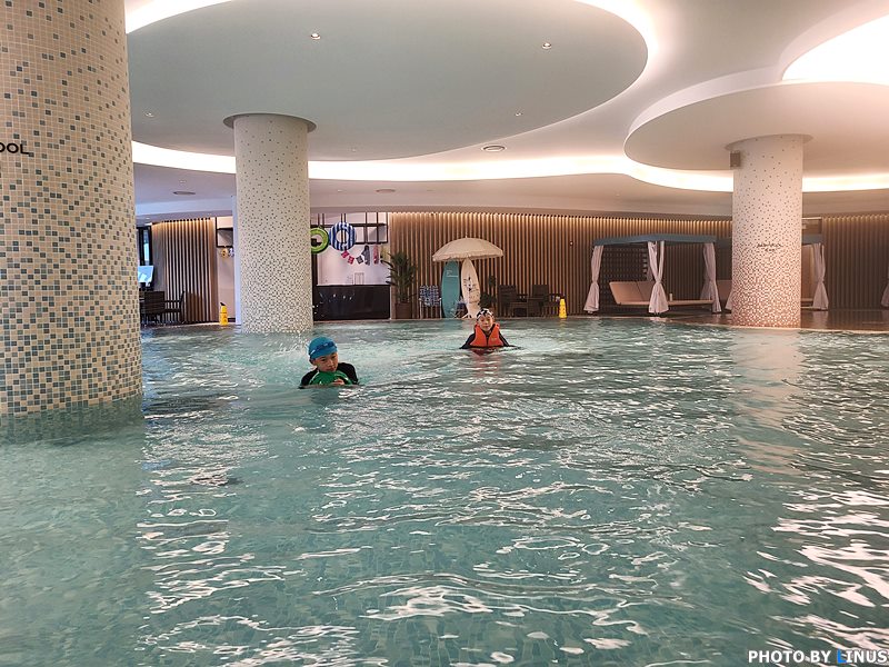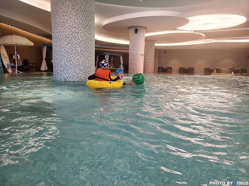 집에서 가지고 온 다이소표 수박공.ㅋ 천원에 샀는데 참고로 이곳에선 만원에 구입할 수있다.ㄷㄷ; 미리 사오길 잘한듯? 복장규정은 실내·외 수영장 래시가드 착용이 허용되며 면소재 수영복 착용 불가하다. 실내·외 수영장 아쿠아슈즈 착용을 권장한다고... 참고로 안전요원이 눈에 불을 켜고 있고 아이들이 뛰면 바로 주의를 주는등... 안전관리가 잘되고 있어서 좋은 거 같다.
