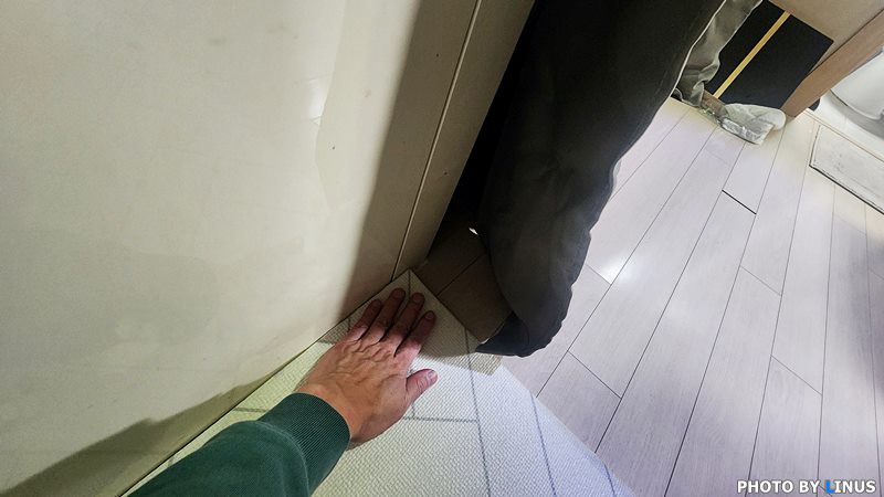 아래쪽에서 냉기가 슬금슬금 올라온다. 사실 처음에는 문풍지나 고무패킹같은 거도 알아봤는데 효과가 떨어진다는 말도 있고 떨어지면 지저분하게 끈끈이 같은 흔적이 남기도 해서 포기했다.