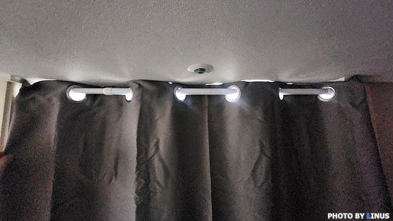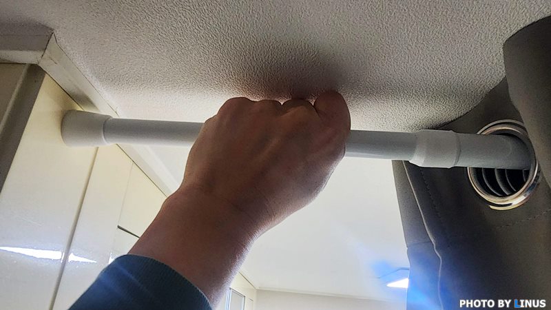 잘 고정 되었다. 커튼링사이로 빛이 조금 비치긴하나 이정도는 무난.