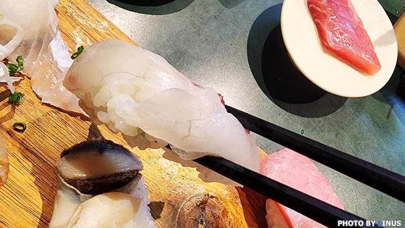 도마(?) 형태의 플레이트 위에 올라간 스시. 연어, 소라, 새우, 유부, 캘리포니아롤, 광어, 참치 등이 보인다. 당연하지만 확실히 쿠우쿠우보단 초밥 하나하나에 올라간 스시살이 훨씬 크고 두툼하다.ㅎ 배터지게 먹고 싶으면 혁신도시의 쿠우쿠우 충무공동점에 가는 게 좋고... 두툼한 초밥을 원한다면 스시하루가 좋은듯.^^